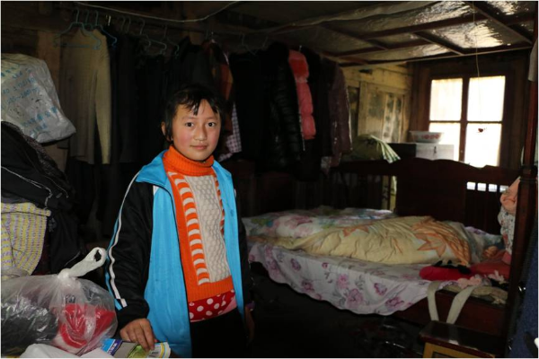 小雪(化名,10歲)在她的家里,學(xué)習(xí)刻苦,成績優(yōu)秀。在家中與爺爺奶奶生活在一起,由于爺爺手術(shù)花銷而導(dǎo)致負債且無存款積蓄,僅靠奶奶務(wù)農(nóng)(采茶葉等)的微薄收入支撐,生活艱苦。