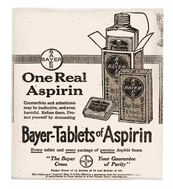 1915年拜耳在《紐約時(shí)報(bào)》刊登整版廣告,宣稱阿司匹林能治療47種疾病,從偏頭痛到月經(jīng)痛無所不包。他們甚至贊助過南極科考隊(duì),讓探險(xiǎn)家?guī)е幤鞣O地。