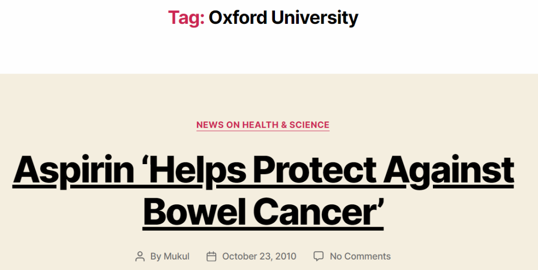 2010年牛津大學(xué)研究顯示,研究員觀察到定期服用阿司匹林的人群腸息肉發(fā)生率顯著降低。