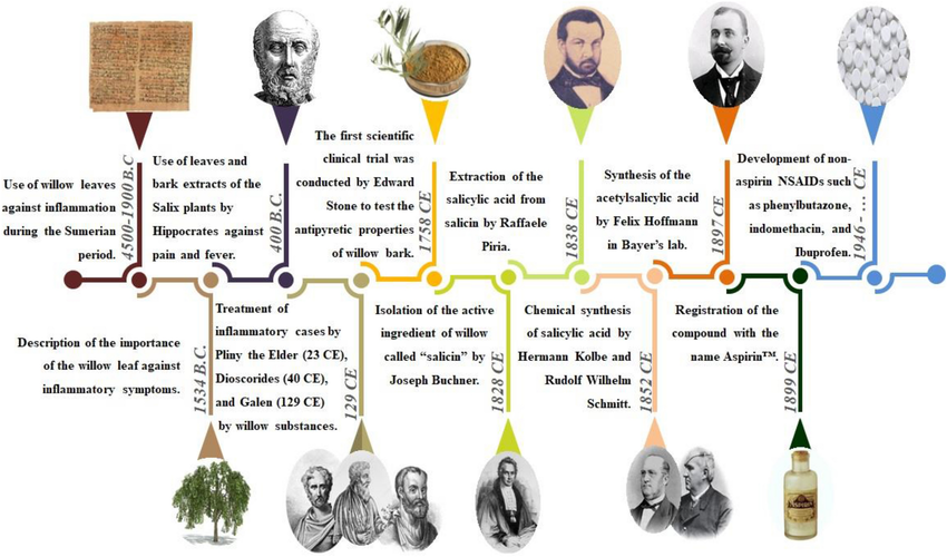 1828年,意大利化學(xué)家拉法萊·皮里亞從柳樹皮中分離出水楊苷,十年后他進(jìn)一步將其轉(zhuǎn)化為水楊酸。