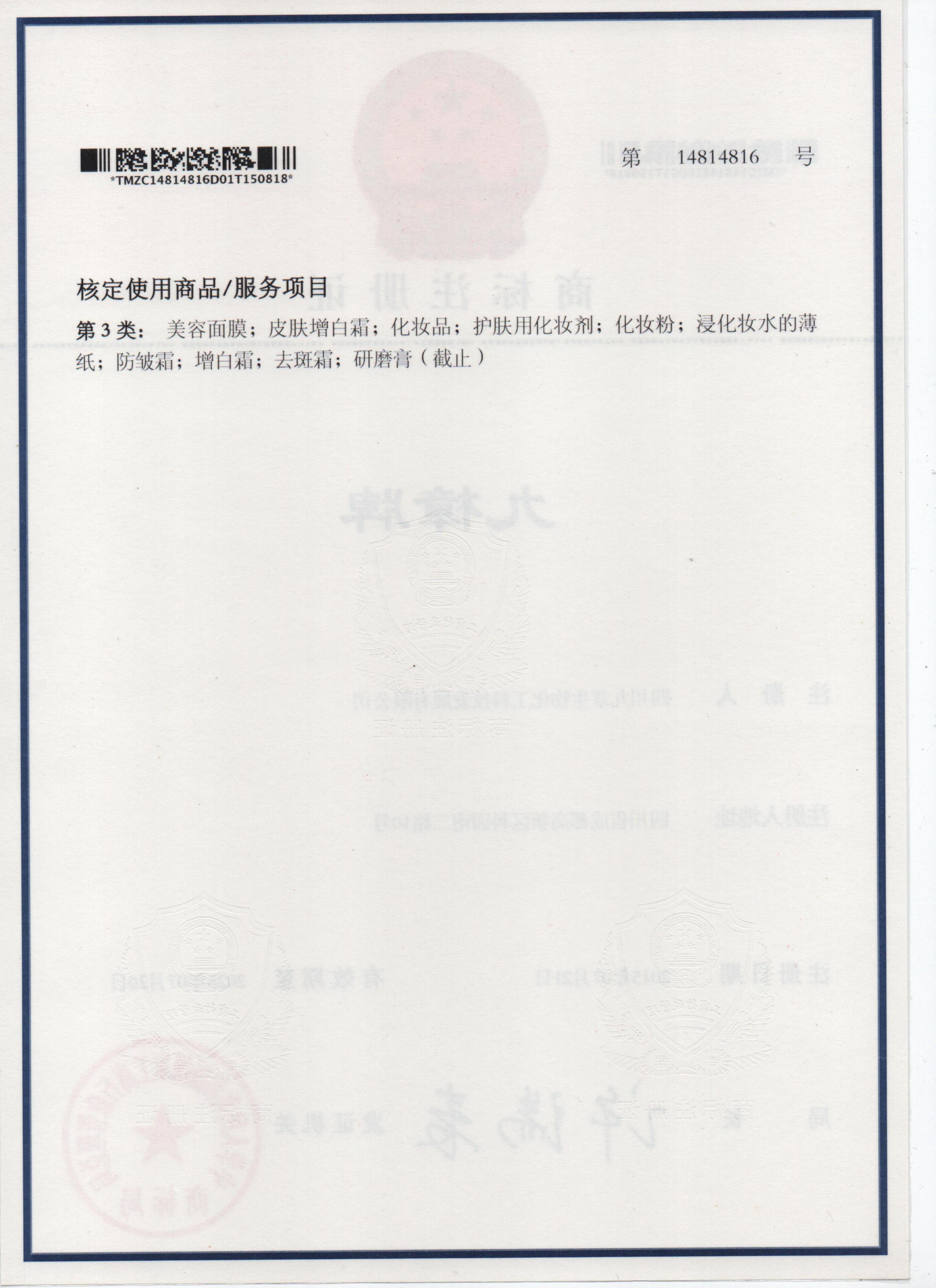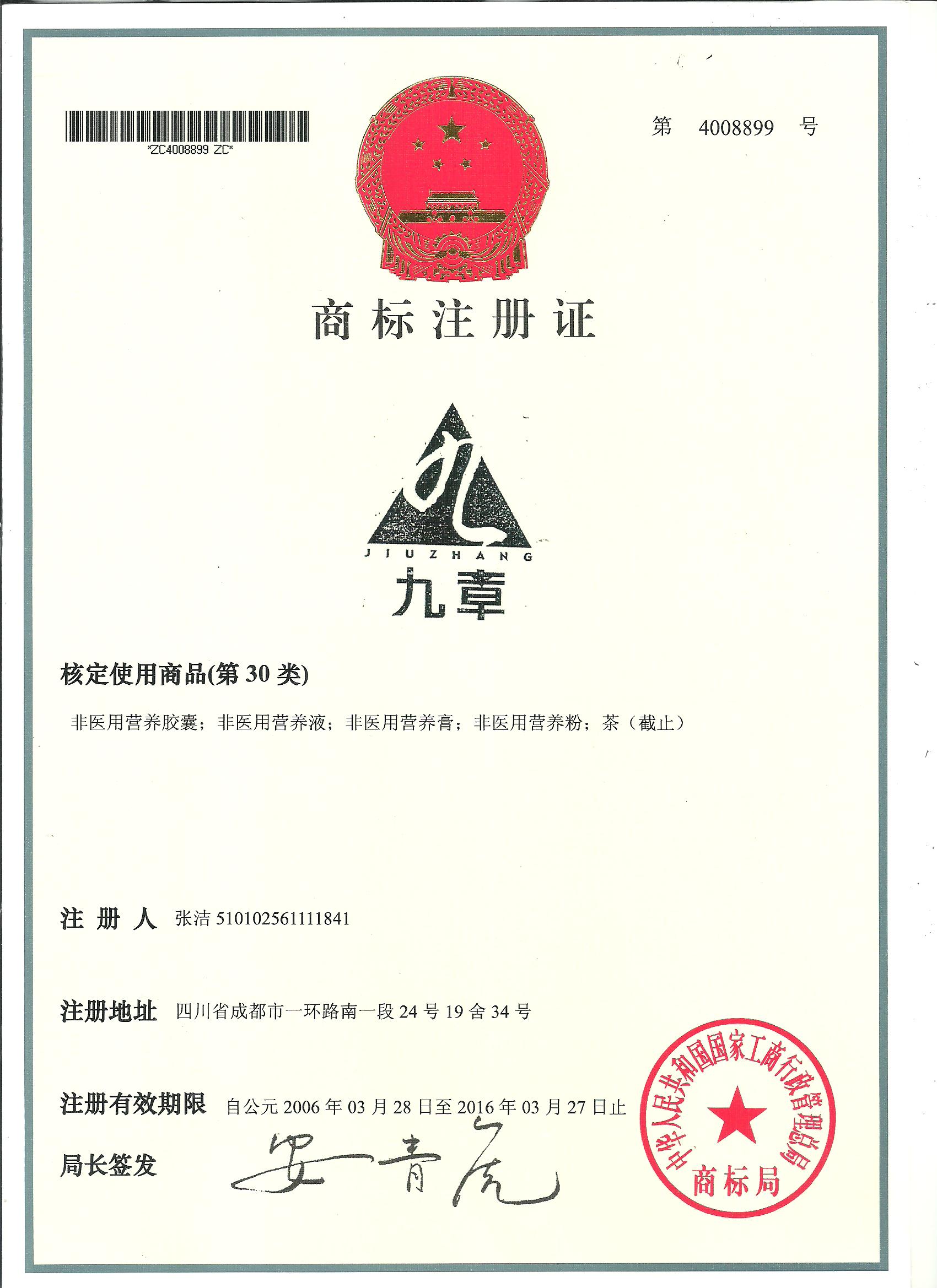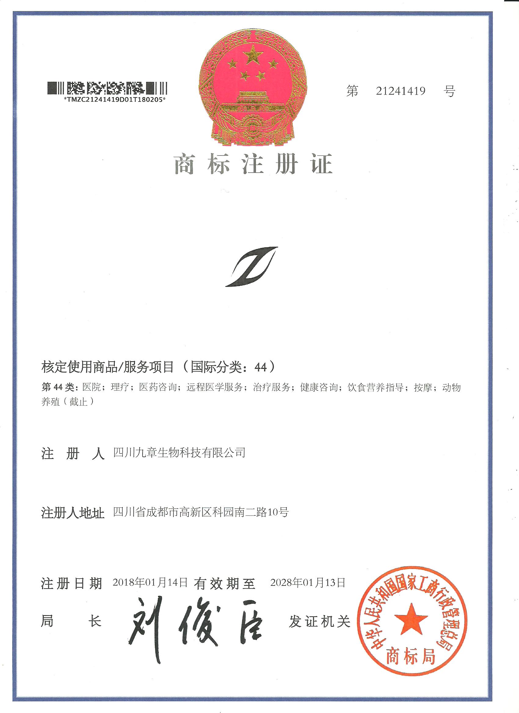 九章生物在人用藥、原料藥、醫(yī)療美容等多個重要領(lǐng)域注冊并獲得有效商標(biāo)權(quán)43項,包括文字或圖案等。