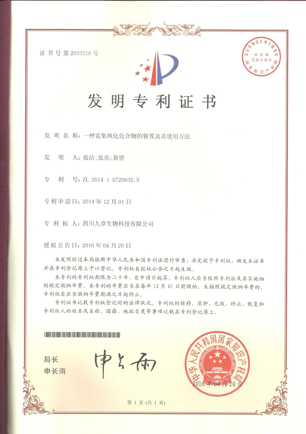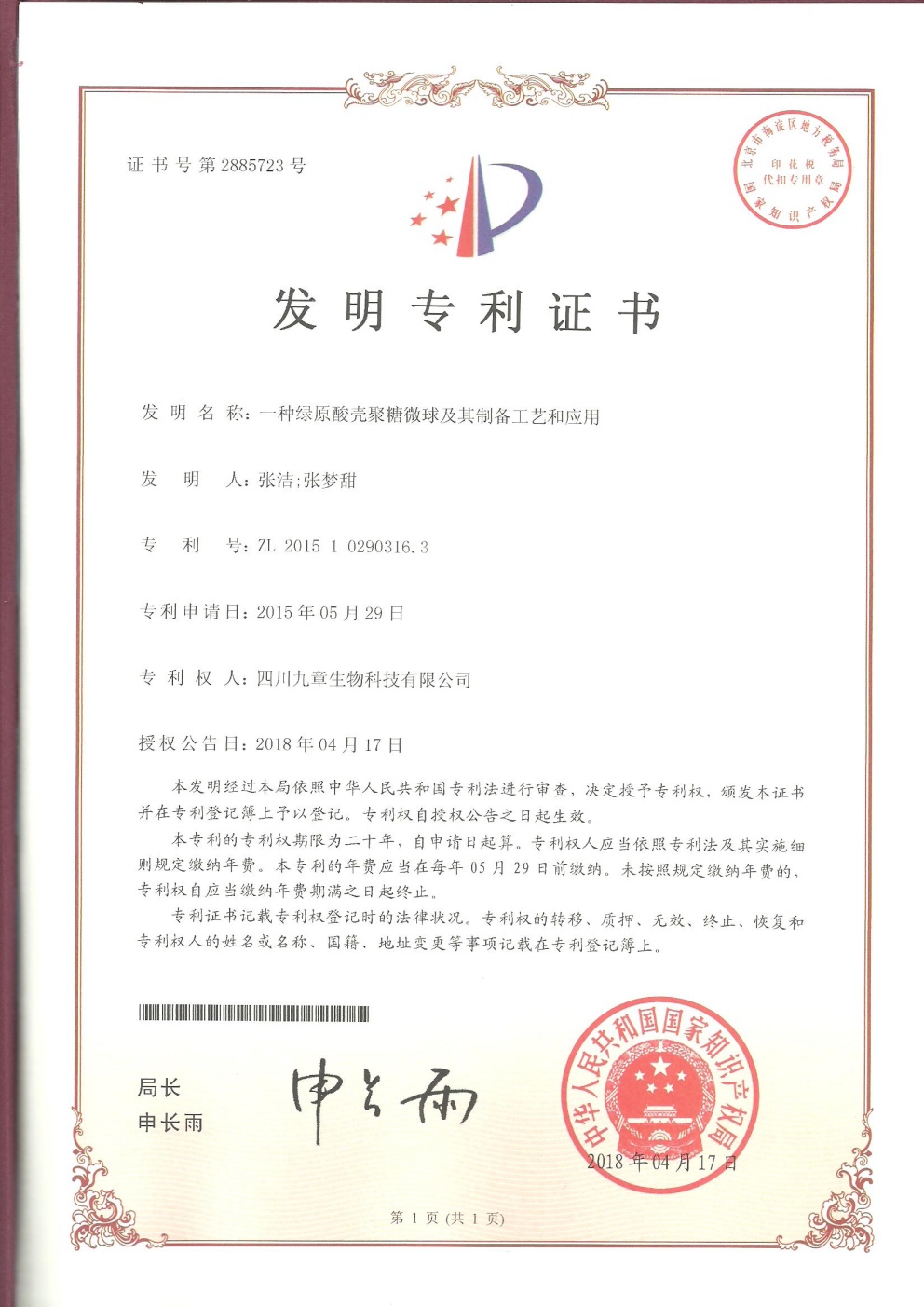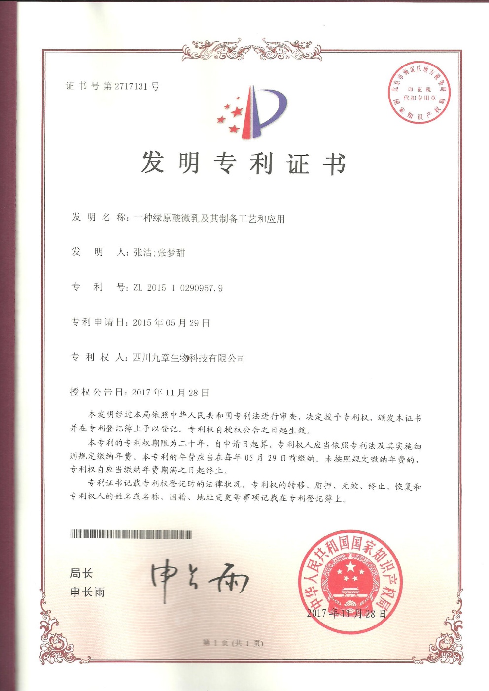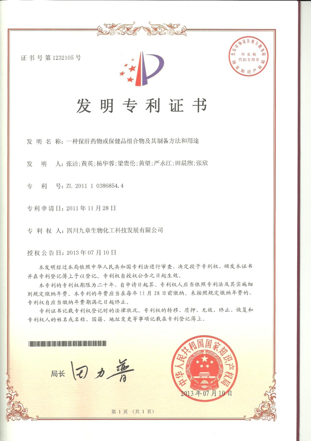 截止2026年03月01日,九章生物圍繞藥品專利保護(hù)方面已獲得國內(nèi)授權(quán)專利計53項,全部為發(fā)明專利;已獲得外國授權(quán)專利計29項,全部為發(fā)明專利,其中美國19項,歐洲5項,日本3項,韓國1項,澳大利亞1項。國內(nèi)申請中的專利6項。國外申請中的專利8項,其中美國5項,澳大利亞1項,日本1項,韓國1項。