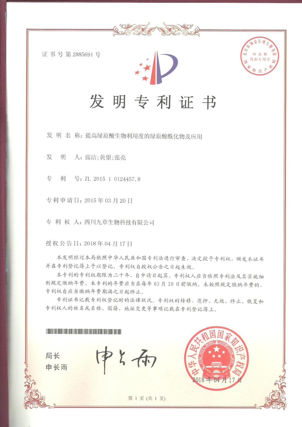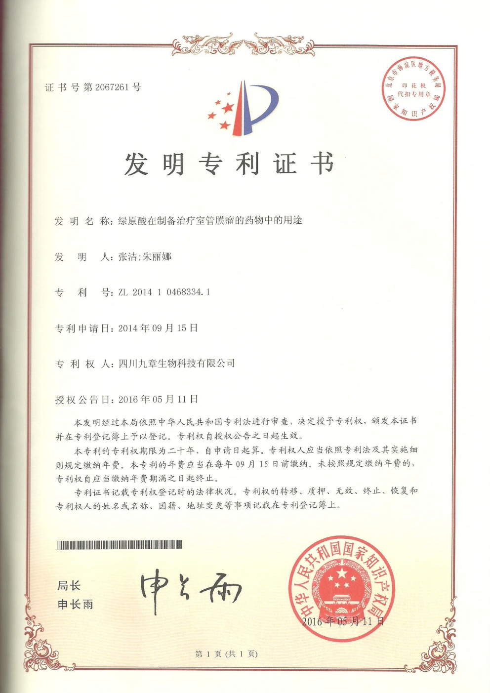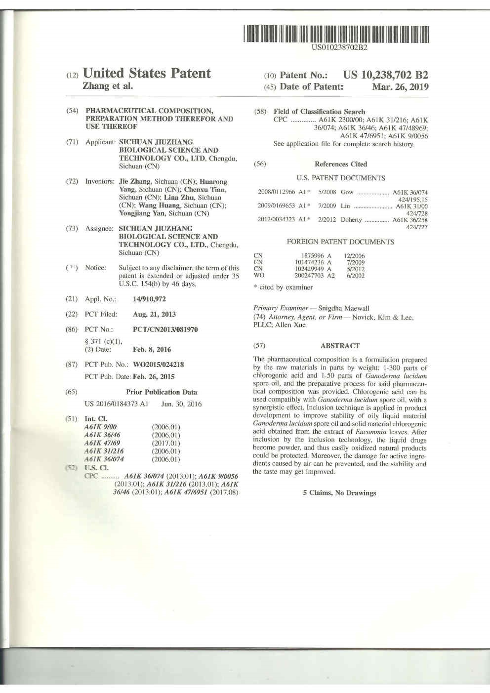 • 美國-PCT-CN2015-094869 一種包含綠原酸晶型的制劑及其用途