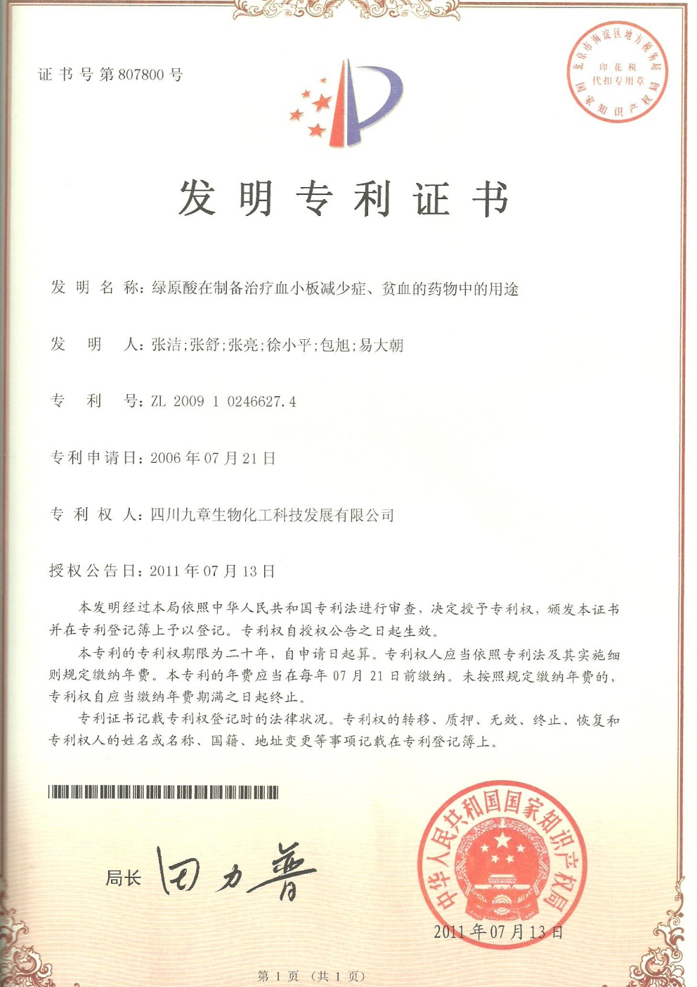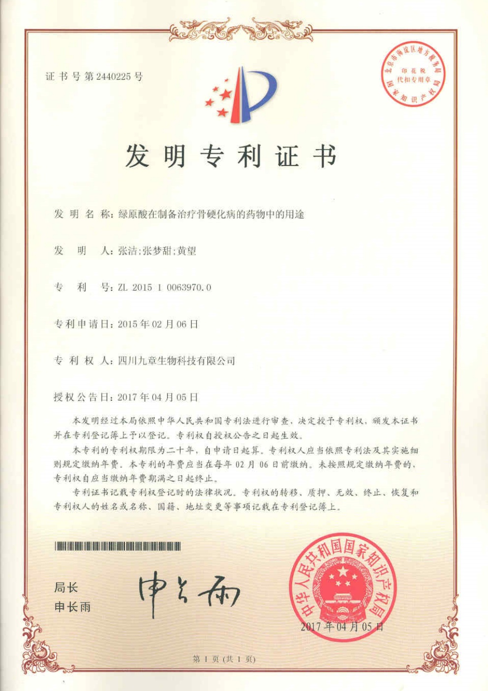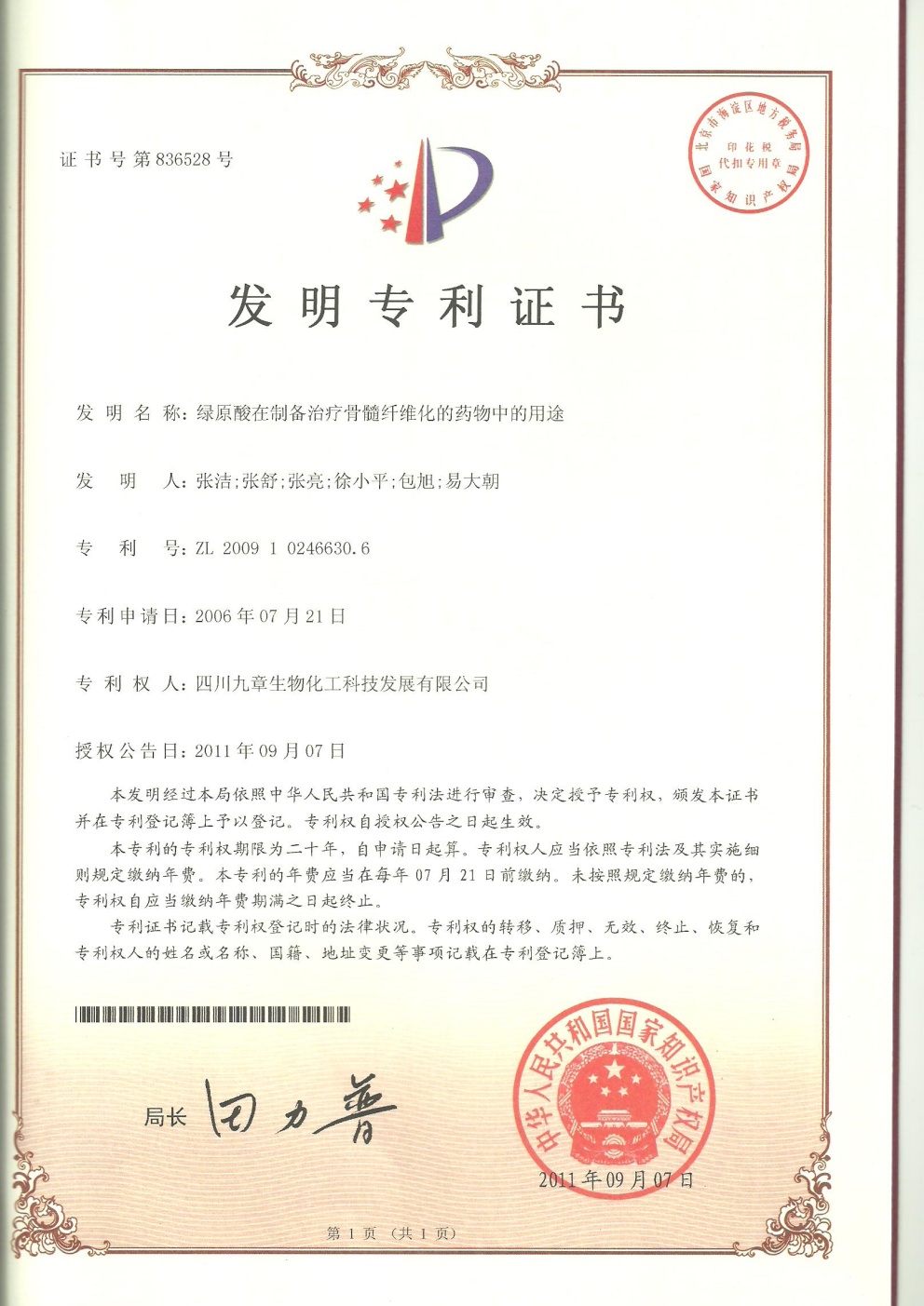 • 美國-PCT-CN2015-094869 一種包含綠原酸晶型的制劑及其用途