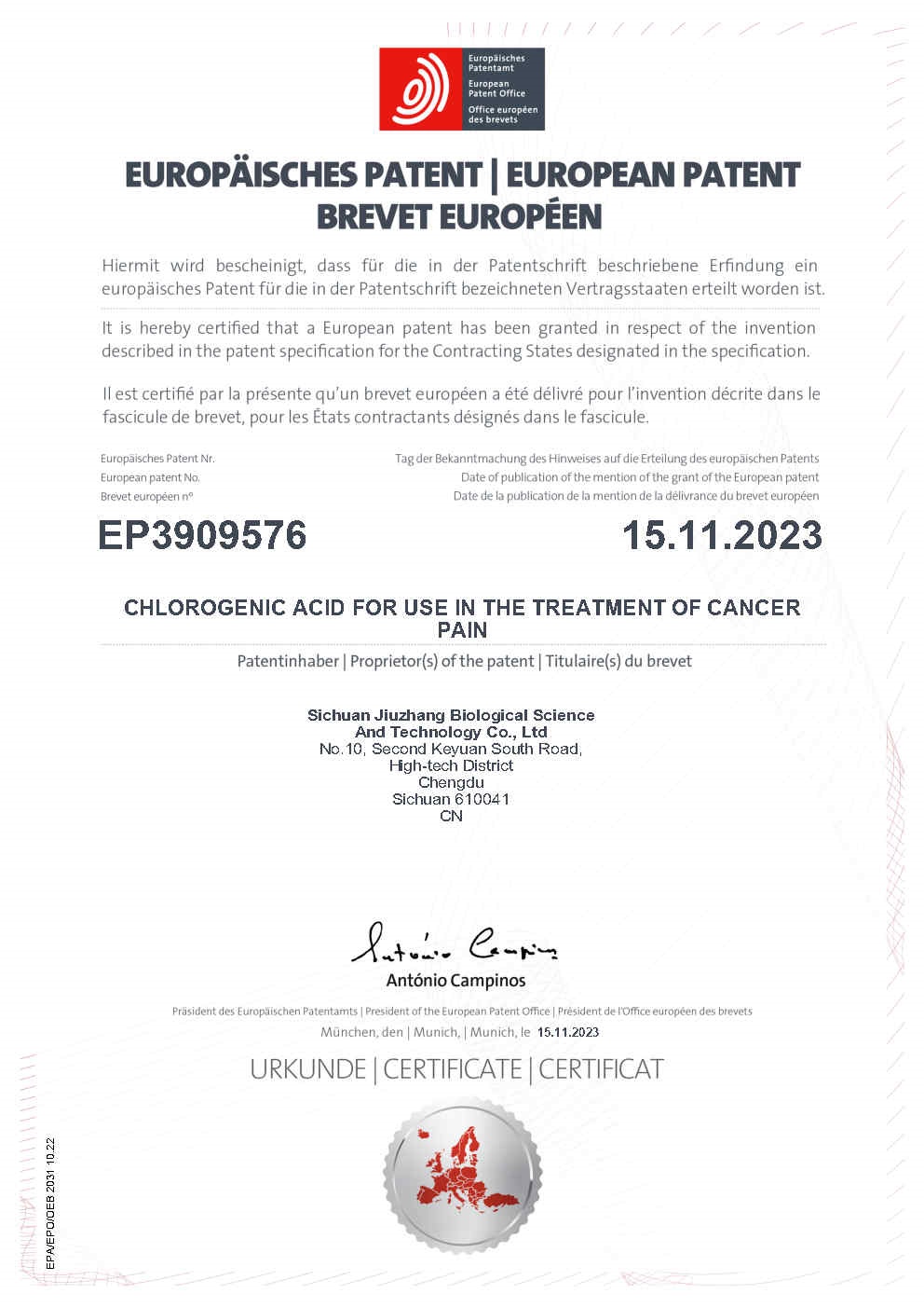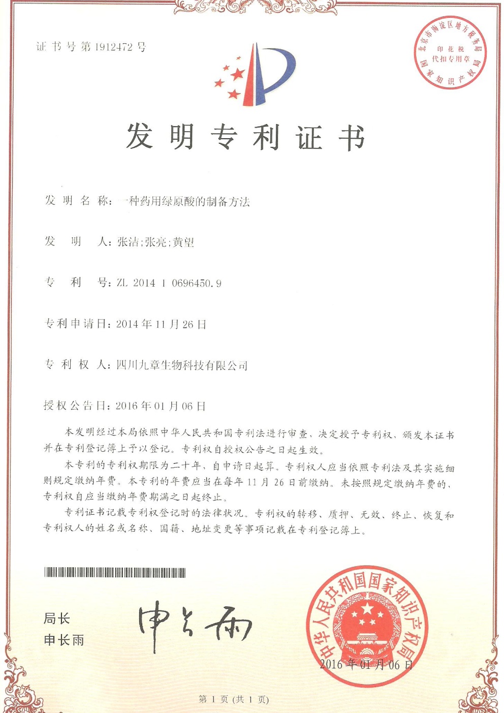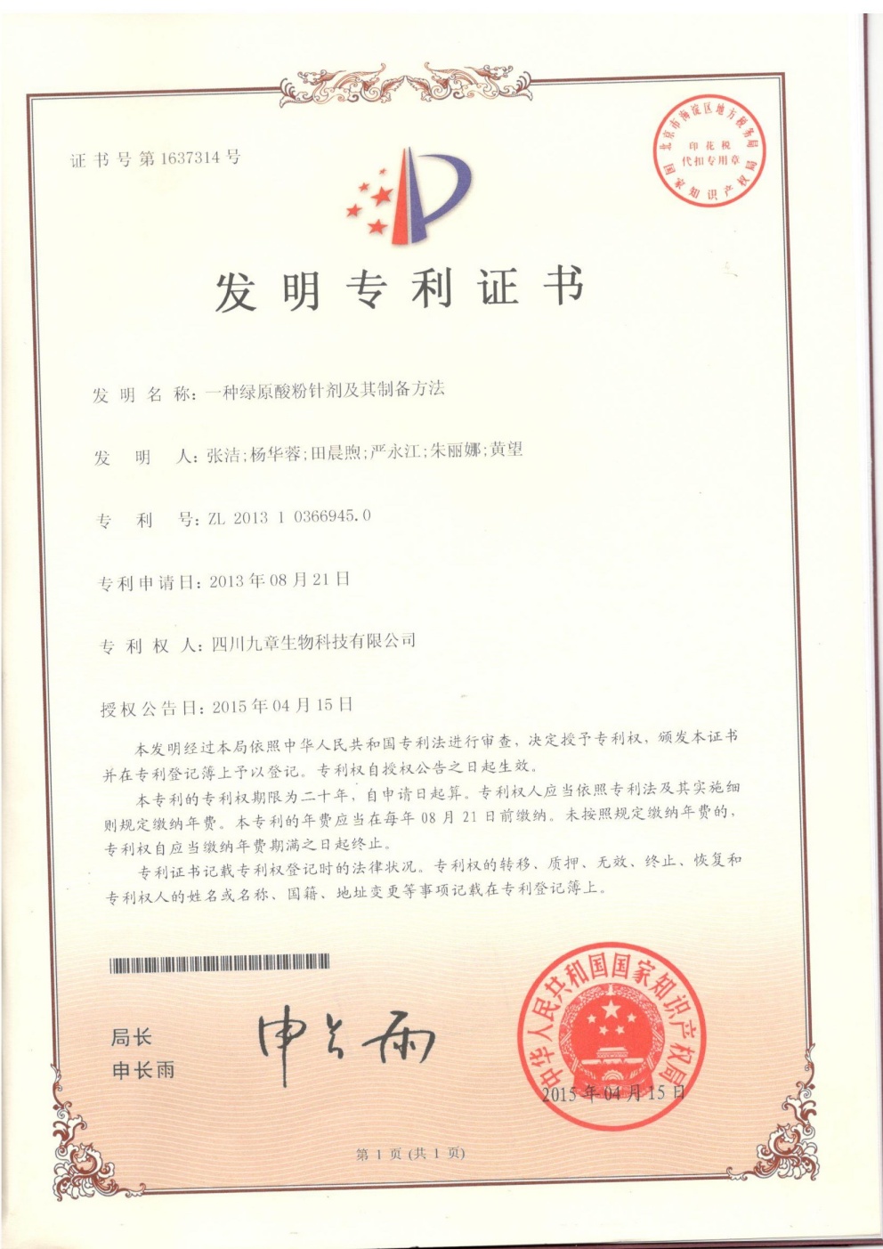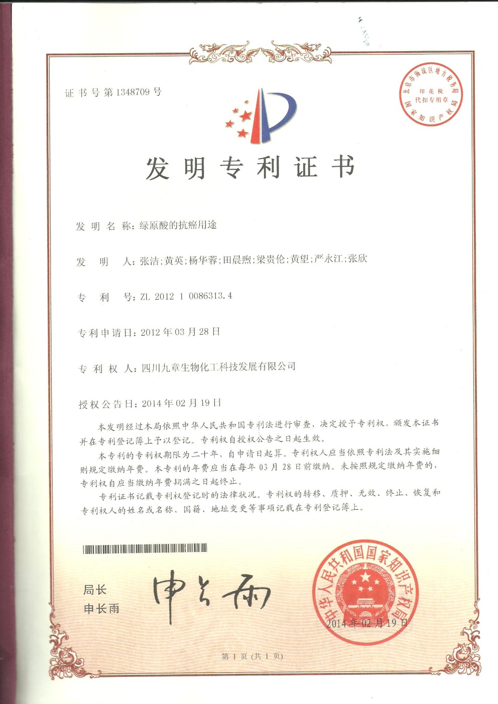 • 歐洲-PCT-CN2014-077652 一種綠原酸晶型及其制備方法