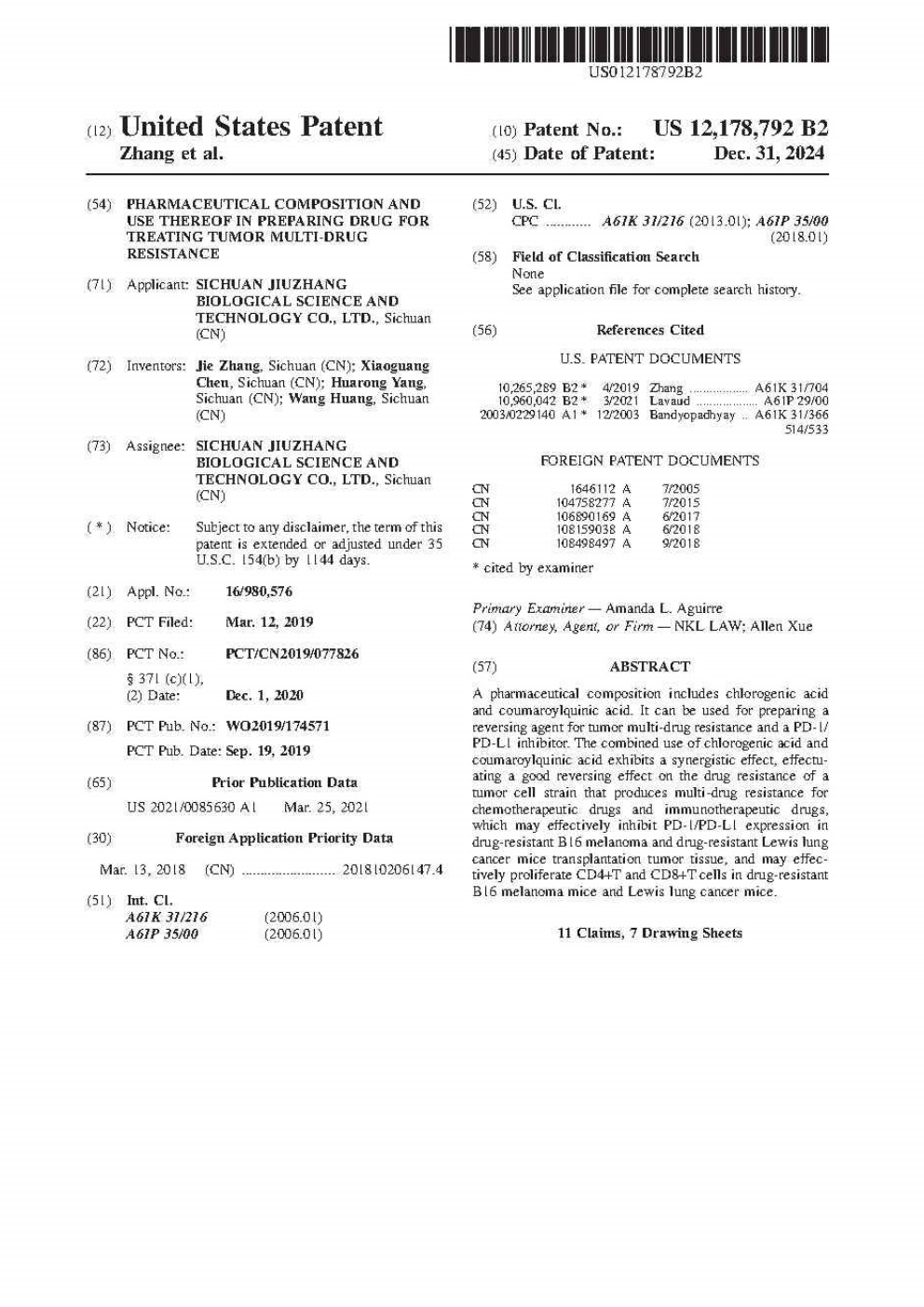 聲明:四川九章生物科技有限公司已公開的專利信息(共計211件),除專利申請人和發(fā)明人外,其他任何機構(gòu)及個人宣稱參與專利實驗內(nèi)容、指導(dǎo)撰寫及策劃組織專利申請等,均屬不實信息。