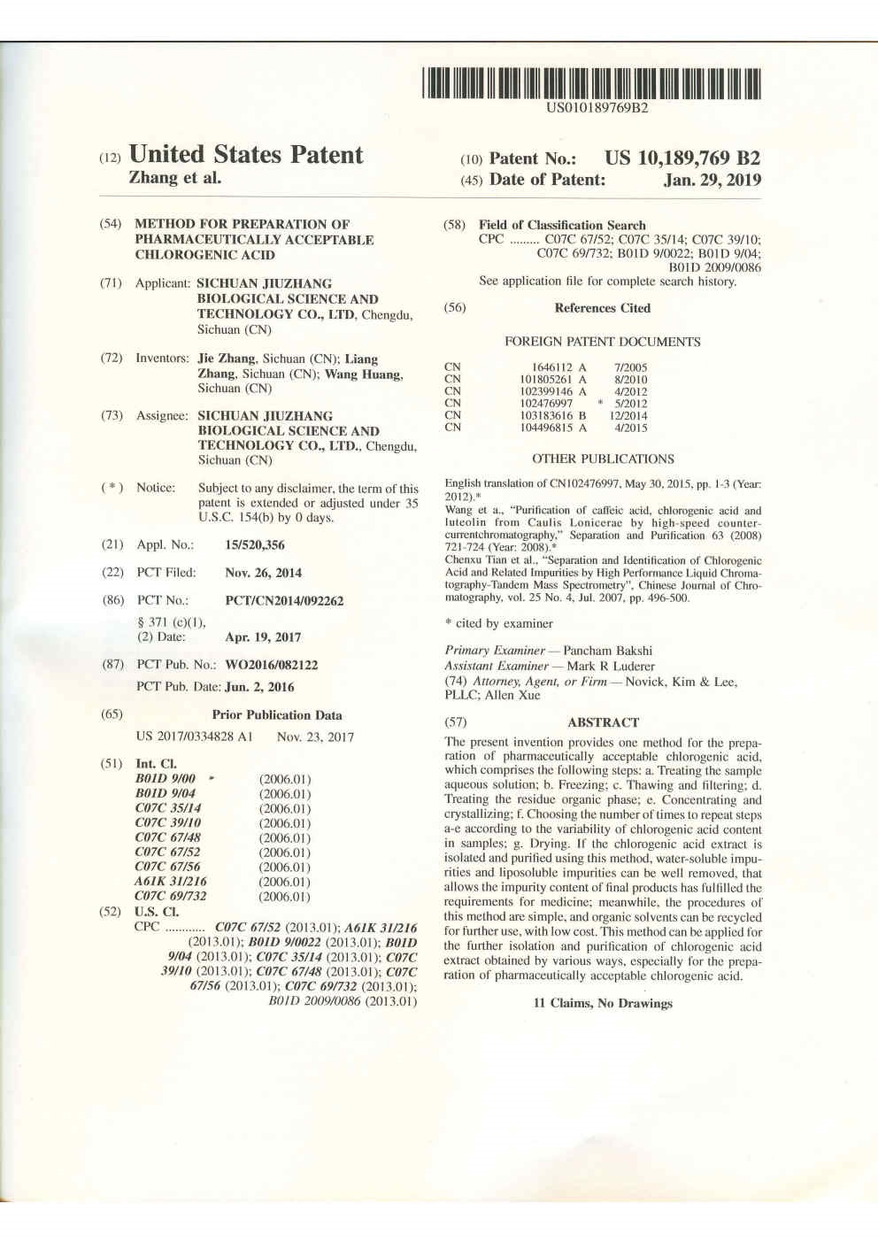 • 美國-PCT-CN2014-092262 一種藥用綠原酸的制備方法