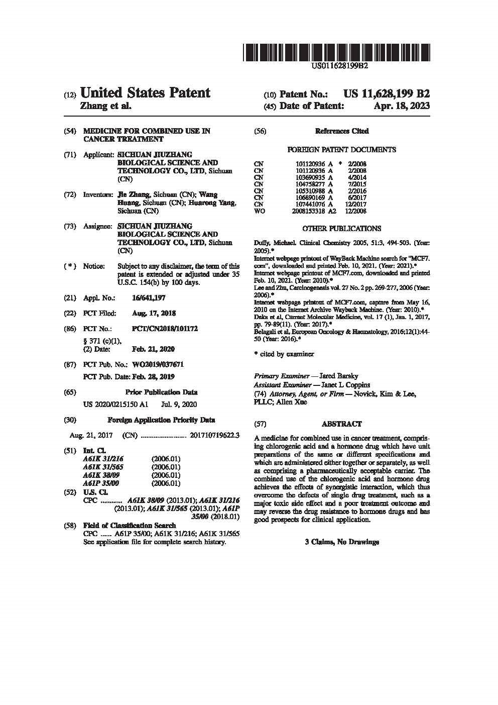 • 美國-PCT-CN2018-101172 一種治療癌癥的聯(lián)合用藥物