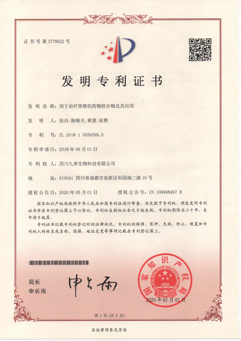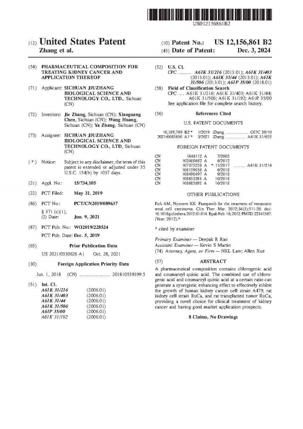 • 美國-PCT-CN2019-089637 用于治療腎癌的藥物組合物及其應(yīng)用
