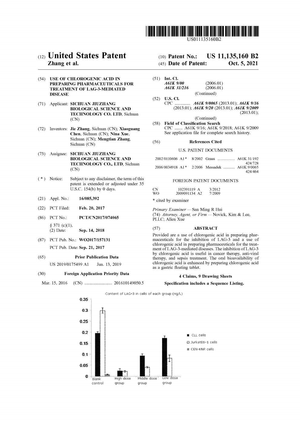 美國-PCT-CN2017-074065 綠原酸在制備治療以LAG-3為靶點的疾病的藥物中的用途