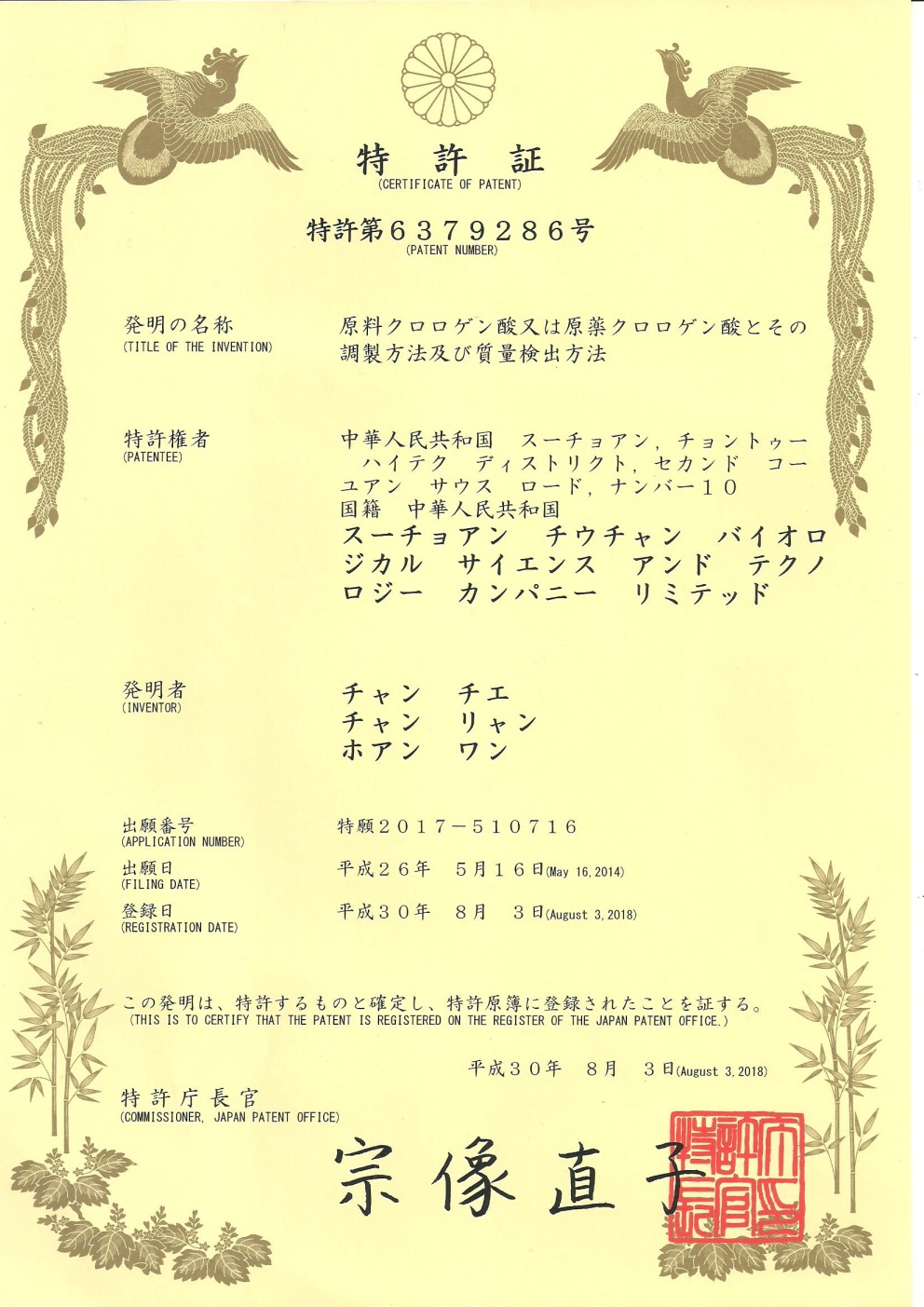 • 日本-PCT-CN2014-077653 一種綠原酸原料或原料藥及其制備方法和質(zhì)量檢測方法