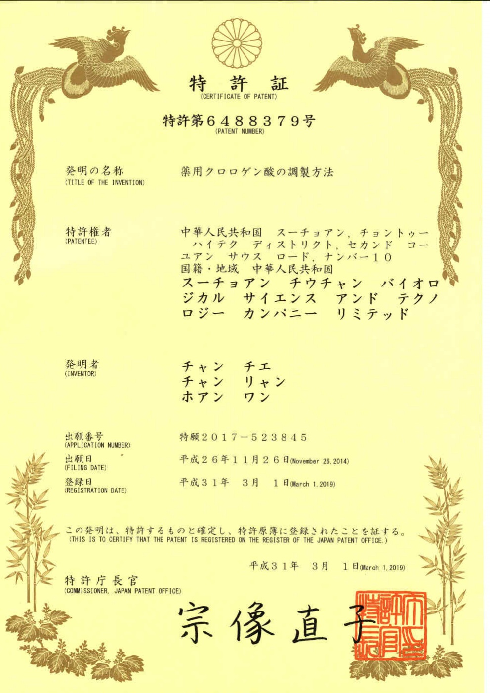 • 日本-PCT-CN2014-092262 一種藥用綠原酸的制備方法