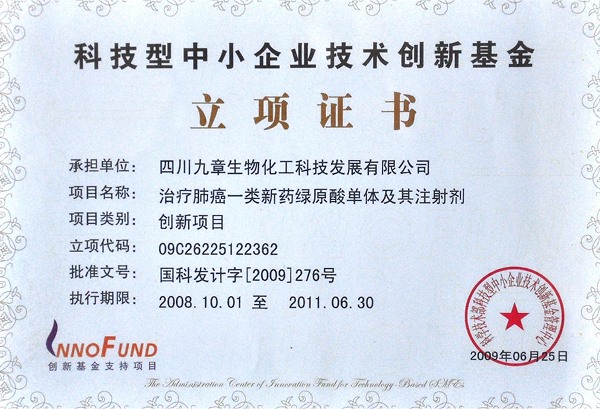 科技型中小企業(yè)技術(shù)創(chuàng)新基金立項(xiàng)證書