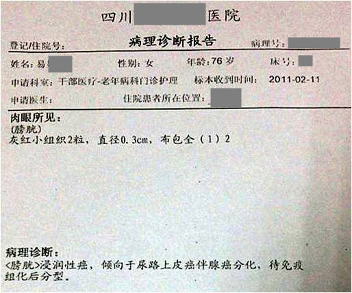 用藥前患者病理診斷報告為膀胱浸潤性癌。單獨使用注射用綠原酸4個月,患者彩超診斷報告顯示,病灶消失。持續(xù)用藥,白細胞和紅細胞均由異常恢復,隨后維持正常,未見復發(fā)和轉(zhuǎn)移跡象。用藥期間顯著改善膀胱癌術(shù)后的頑固性血尿,且患者生活質(zhì)量得到明顯改善。