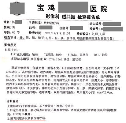 用藥前患者病理檢查確診為食管癌(鱗狀細胞癌),沒有手術(shù)指征,無法進行手術(shù)。隨后開始聯(lián)合放化療使用注射用綠原酸,完成9次化療后,開始單獨使用注射用綠原酸至今。用藥20天影像學(xué)檢查顯示病灶范圍較前縮?。挥盟?年7個月復(fù)查,顯示食管管腔較前變化不大;聯(lián)合用藥期間,放化療基本沒有副作用?;颊哂盟幹两?,不影響外出旅游,病情穩(wěn)定向好,無復(fù)發(fā)和轉(zhuǎn)移跡象,血生化指標(biāo)正常,生活狀態(tài)良好。