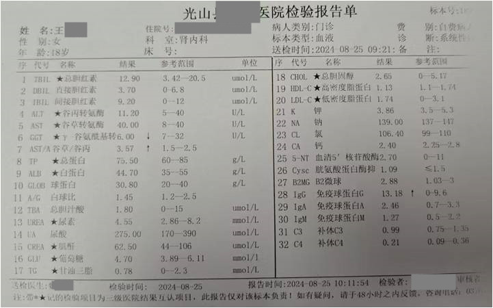 用藥1年1個(gè)月,復(fù)查,免疫指標(biāo)基本正常。